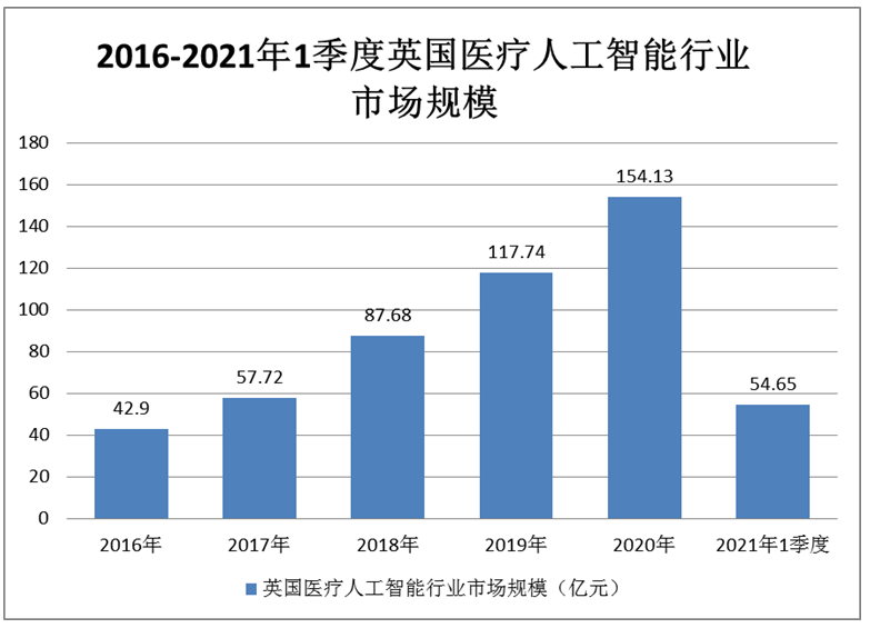 圖表 2016-2021年1季度英國醫(yī)療人工智能行業(yè)市場規(guī)模