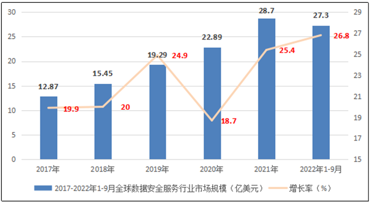 圖表 2017-2022年1-9月全球數(shù)據(jù)安全服務行業(yè)市場規(guī)模