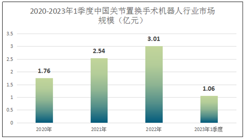 圖表 2020-2023年1季度中國關(guān)節(jié)置換手術(shù)機(jī)器人行業(yè)市場規(guī)模