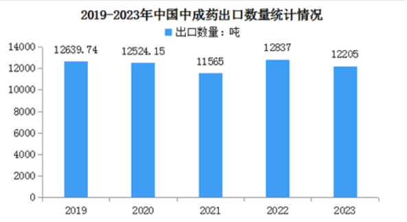 目前,中醫(yī)藥已傳播到全球180多個(gè)國(guó)家和地區(qū),在其中29個(gè)國(guó)家和地區(qū)得到法律認(rèn)可,18個(gè)國(guó)家和地區(qū)將中醫(yī)藥納入醫(yī)療保險(xiǎn)范疇。受國(guó)外中成藥需求變動(dòng)影響,我國(guó)中成藥出口量較為波動(dòng)。國(guó)家統(tǒng)計(jì)局?jǐn)?shù)據(jù)顯示,2019年-2021年我國(guó)中成藥出口量出現(xiàn)下降,2022年恢復(fù)增長(zhǎng),2023年小幅下降。其中,2023年我國(guó)中成藥出口量12205噸,同比下降4.9%。