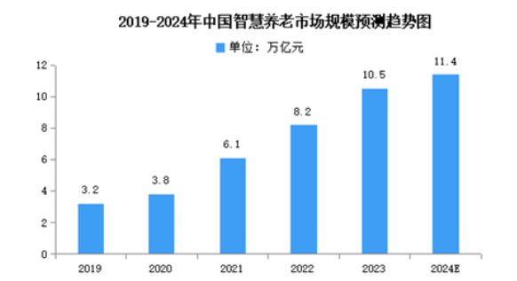 智慧養(yǎng)老產(chǎn)業(yè)是以智能產(chǎn)品和信息系統(tǒng)平臺為載體,面向人民群眾的健康及養(yǎng)老服務需求。如今,中國老齡化趨勢明顯,養(yǎng)老產(chǎn)業(yè)需求增長。2022年中國智慧養(yǎng)老市場規(guī)模約達8.2萬億元,同比增長34.43%。2024年市場規(guī)模將達11.4萬億元。
