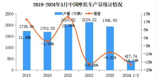 3月共產(chǎn)銷摩托車172.65萬(wàn)輛和167.3萬(wàn)輛,環(huán)比增長(zhǎng)92.98%和77.08%,同比下降20.66%和17.5%。一季度,共產(chǎn)銷摩托車417.74萬(wàn)輛和418.23萬(wàn)輛,同比下降16.34%和13.97%。