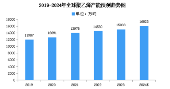 全球聚乙烯產(chǎn)能處于擴(kuò)張期,產(chǎn)能增長(zhǎng)主要集中在亞洲。2023年全球新增聚乙烯產(chǎn)能503萬(wàn)噸,產(chǎn)能整體約為2730萬(wàn)噸,同比增長(zhǎng)10.08%。2024年全球聚乙烯產(chǎn)能將達(dá)2958萬(wàn)噸。