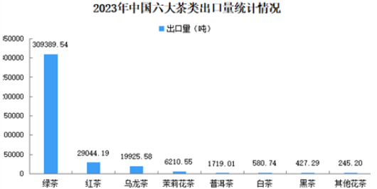 在出口量方面,綠茶仍是中國茶葉出口的絕對(duì)優(yōu)勢(shì)品類,占比84.18%;茶類中,烏龍茶和黑茶有所增長,其余均有不同幅度下降,紅茶降幅最大,達(dá)12.62%。