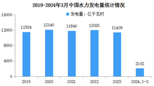 2024年1-3月,全國規(guī)模以上工業(yè)絕對發(fā)電量為22372億千瓦時,同比增長6.7%。其中,水力發(fā)電量2102億千瓦時,同比增長2.2%。