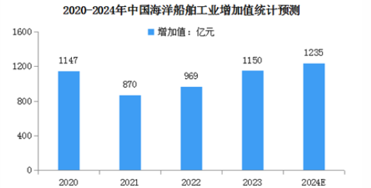 目前,我國船舶制造高端化、智能化、綠色化發(fā)展扎實(shí)推進(jìn),已進(jìn)入產(chǎn)品全譜系發(fā)展新時(shí)期。2023年我國海洋船舶工業(yè)增加值1150億元,比上年增長17.6%。2024年我國海洋船舶工業(yè)將增加值有望達(dá)1235億元。