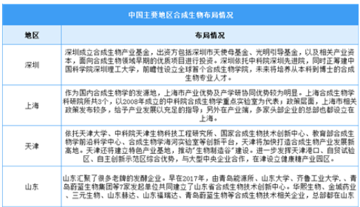 合成生物產(chǎn)業(yè)在全球范圍內(nèi)得到了廣泛布局,中國、美國、歐洲、日本等國家和地區(qū)都在積極布局該產(chǎn)業(yè)。目前,天津、上海和深圳代表了我國合成生物技術(shù)產(chǎn)業(yè)的三大陣地。