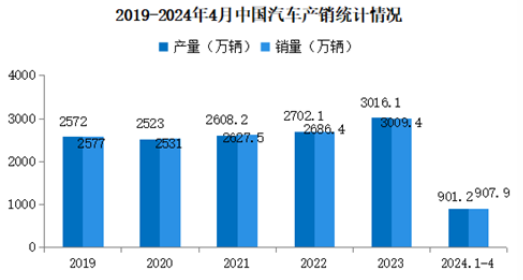 2024年4月,新能源汽車產(chǎn)銷分別完成87萬輛和85萬輛,同比分別增長35.9%和33.5%。2024年1-4月,新能源汽車產(chǎn)銷分別完成298.5萬輛和294萬輛,同比分別增長30.3%和32.3%。