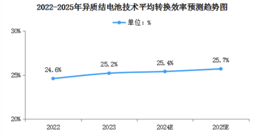 目前,HJT電池的轉(zhuǎn)換效率要優(yōu)于其他電池技術(shù)的轉(zhuǎn)換效率。2023年我國(guó)光伏晶硅電池轉(zhuǎn)換效率穩(wěn)步提升,異質(zhì)結(jié)電池平均轉(zhuǎn)換效率達(dá)到25.2%。2024年我國(guó)異質(zhì)結(jié)電池平均轉(zhuǎn)換效率將達(dá)到25.4%。