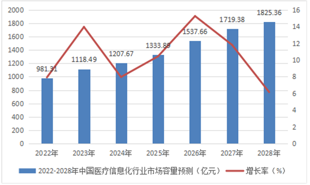 圖表 2022-2028年中國(guó)醫(yī)療信息化行業(yè)市場(chǎng)容量預(yù)測(cè)