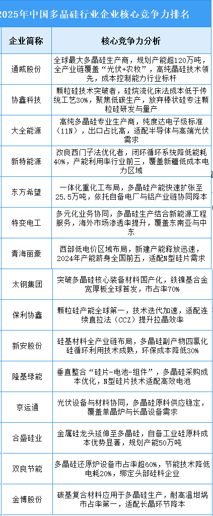 當(dāng)前中國多晶硅行業(yè)呈現(xiàn)規(guī);瘮U(kuò)張與技術(shù)路線分化并重的特征,頭部企業(yè)通過全產(chǎn)業(yè)鏈整合(從硅料到光伏電站)、低碳工藝突破(如顆粒硅、閉環(huán)生產(chǎn))、國產(chǎn)化替代(核心設(shè)備與材料)及區(qū)域成本優(yōu)勢(低電價(jià)區(qū)域布局)構(gòu)建競爭壁壘。政策推動(dòng)下,產(chǎn)能過剩風(fēng)險(xiǎn)與技術(shù)迭代壓力并存,未來競爭將聚焦于高純度產(chǎn)品研發(fā)(如半導(dǎo)體級(jí))、全球化市場滲透(東南亞、歐洲)及ESG體系優(yōu)化(能耗與排放管理),同時(shí)需應(yīng)對(duì)國際貿(mào)易壁壘與價(jià)格波動(dòng)的挑戰(zhàn)。